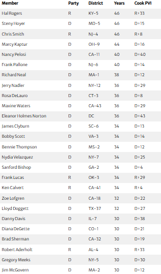 There are currently 26 members of the U.S. House who have served 30 years or more, three full decades in one job, in one institution, in one district. Twenty-one of them are Democrats. Five are Republicans. That 4-to-1 ratio is not coincidental; it is structural, a product of the Democratic Party’s seniority system that rewards long tenure with powerful committee chairmanships and the safe urban districts that make those careers possible.